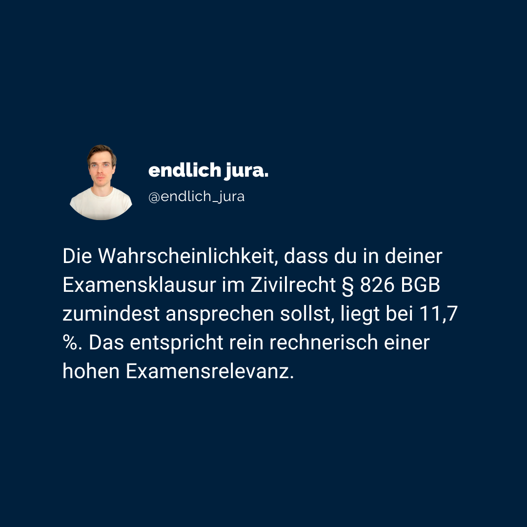 Starten wir direkt mit dem heutigen Thema: § 826 BGB – Vorsätzliche sittenwidrige Schädigung.