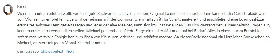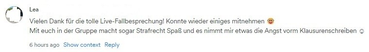 Du hast jetzt eine bessere Vorstellung davon, wie man an eine Klausur herangeht, wünschst dir jedoch weitergehende personalisierte Hilfestellung? Jede Woche treffen wir uns – ganz beschaulich – zu einer offenen Fragerunde. Hier kannst du dir etwa Feedback einholen zum: